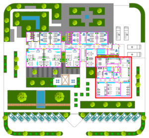 Phase Zero: Standards Spatial and environmental criteria (easy access to emergency transportation routes, appropriate distance from sources of pollution, etc.) Space design (use of washable and antibacterial and antifungal materials, proper ventilation of sections, separation of routes, etc.) Building safety and resistance (compliance with Regulation 2800 on earthquake resistance, fire alarm and extinguishing system, etc.) Health standards (air conditioning system with HEPA filtration, appropriate temperature and humidity control, etc.) Phase One: Design Preparation and design (measurement plan, furniture plan, ceiling and floor, etc.).